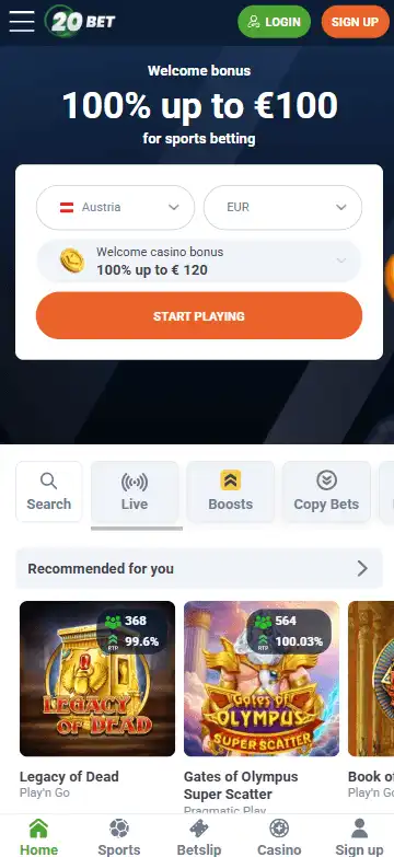 20Bet funguje na všech hlavních zařízeních, včetně iPhonů, iPadů, telefonů a tabletů s Androidem. Hráči mohou bez omezení spravovat také vklady, výběry a nastavení účtu, což zajišťuje plnohodnotný kasinový zážitek i na mobilu.