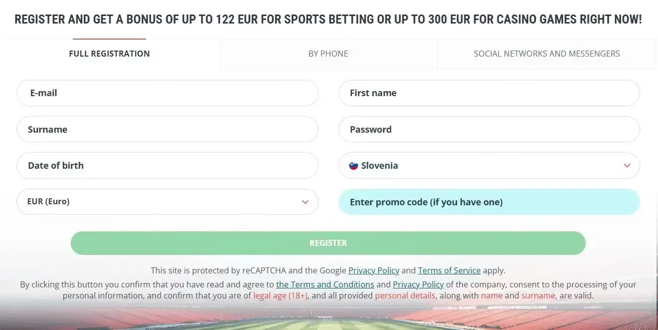- Vyberte typ registrace. Zvolte z možností plná registrace, telefon nebo registrace přes sociální sítě/messenger.