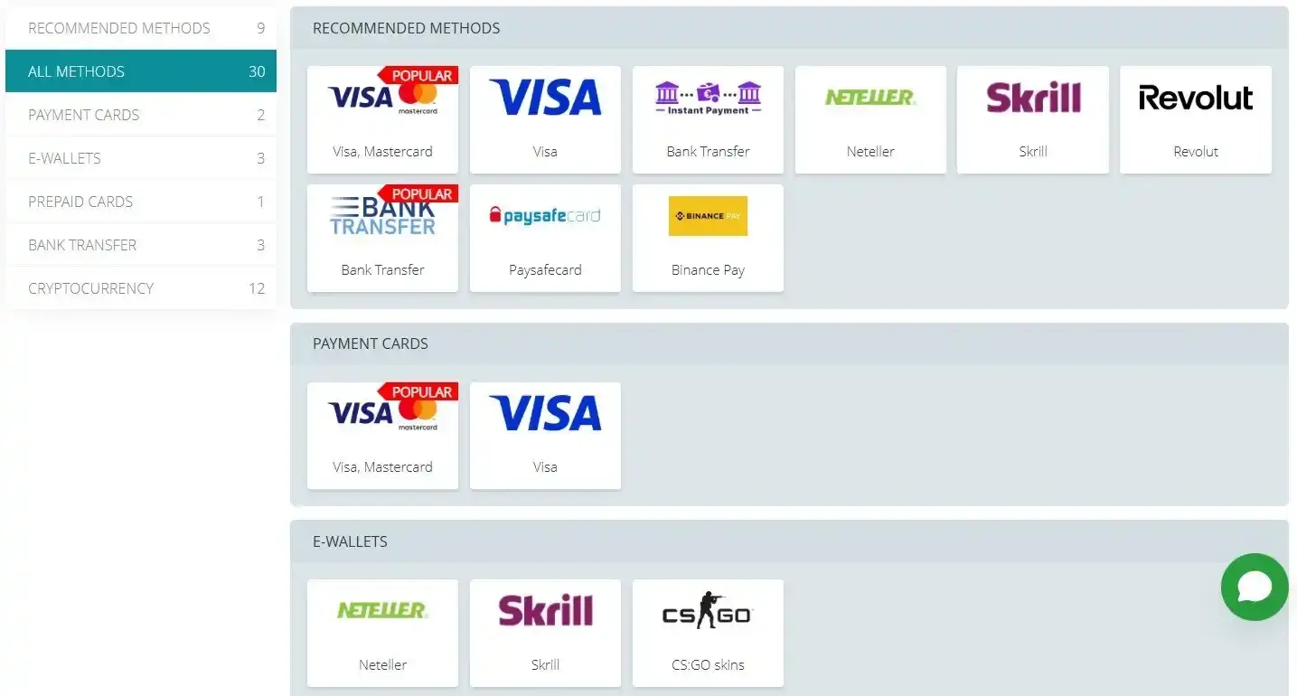 22Bet Kasino Česko nabízí širokou škálu platebních metod, které vyhovují jak tradičním, tak moderním hráčům. Vklady jsou zpracovány okamžitě u všech podporovaných možností, s limity začínajícími již od 8,74 € přes Binance Pay nebo 10 € při použití karet, bankovních převodů a elektronických peněženek, a to až do výše 100 000 € pro Neteller, Skrill či dokonce CS:GO skiny. Platforma navíc podporuje širokou paletu kryptoměn, včetně Bitcoinu, Etherea, Litecoinu, Dogecoinu, TRONu, XRP a stablecoinů, jako jsou Tether a USD Coin, čímž poskytuje českým hráčům maximální flexibilitu.