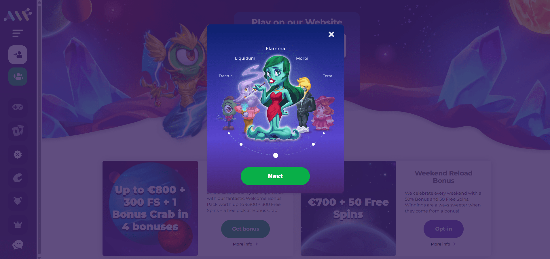 - Od 20 €: 120 % až do 240 € + Bonus Crab + až 100 volných zatočení