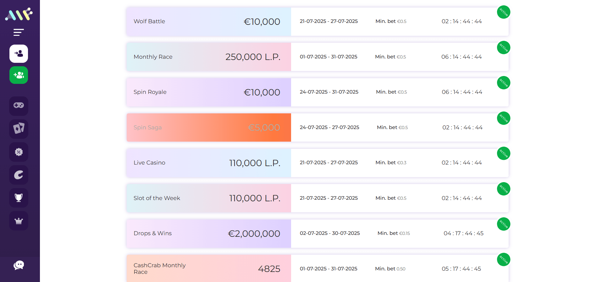 Každý turnaj má své minimální požadavky na sázky (od pouhých 0.15 €) a konkrétní hry, které se započítávají. Sázky a výhry určují vaši pozici v žebříčku, zatímco nasbírané věrnostní body pomáhají k rychlejšímu postupu ve VIP programu. Díky častým aktualizacím čekají na české hráče vždy nové soutěžní výzvy.