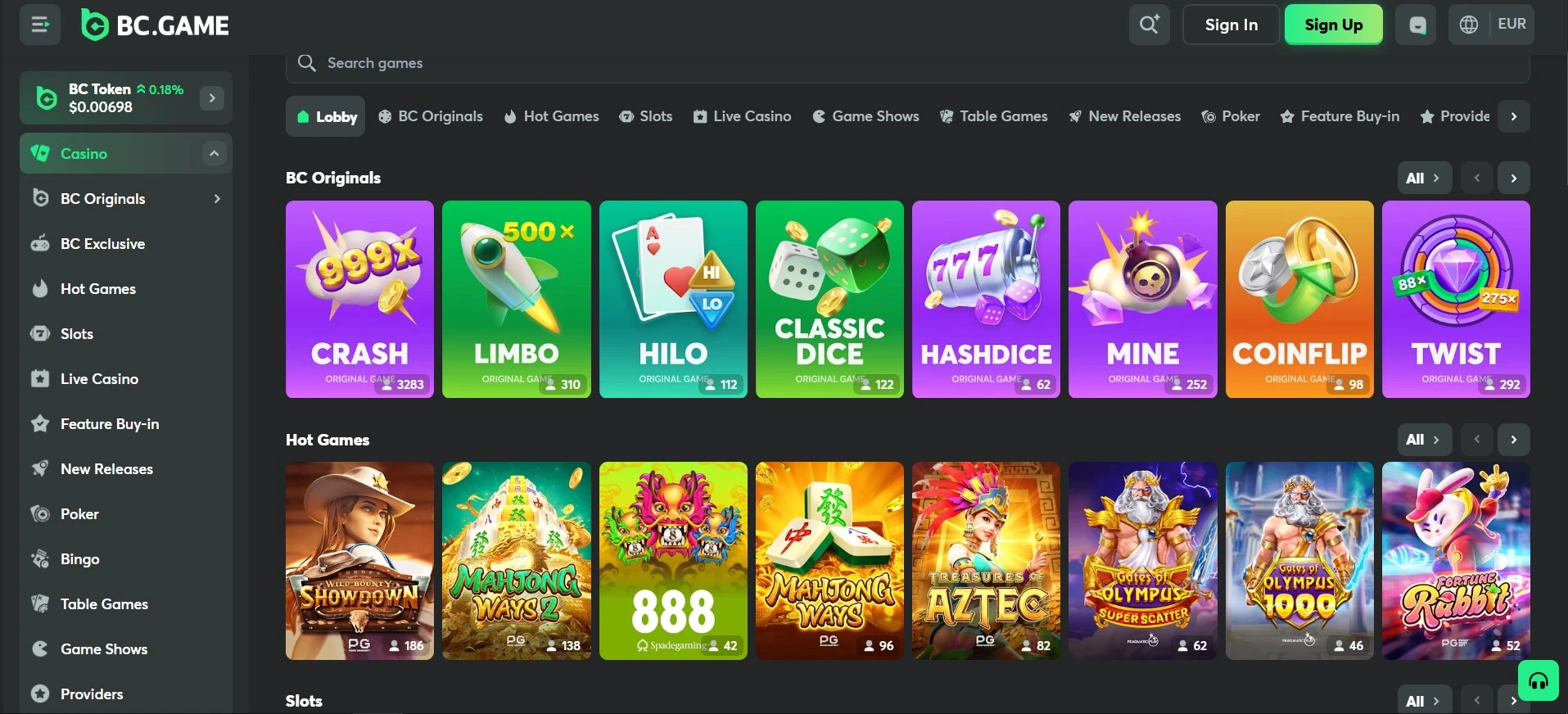 - Masivní výběr her včetně automatů, live dealer titulů a BC Originals.