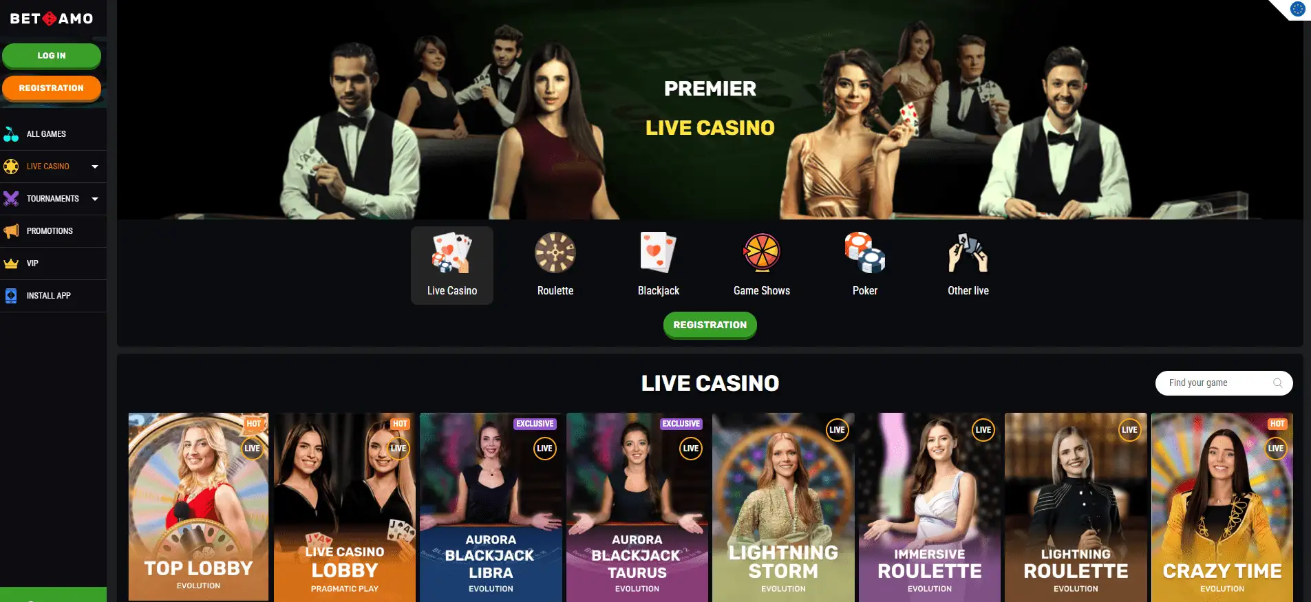 Je v BetAmo Casino sekce live casina?