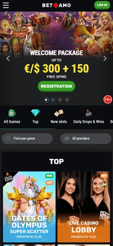 - Přejděte na oficiální web BetAmo Casino.