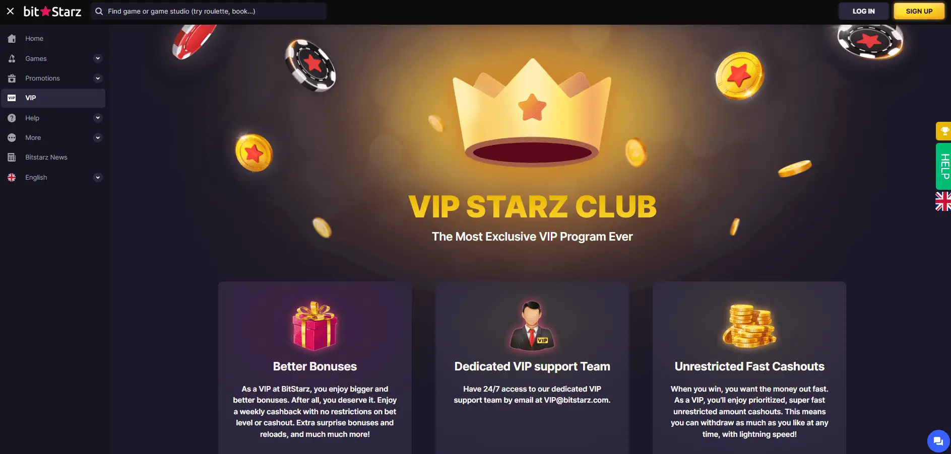 Věrnostní program BitStarz Casino odměňuje aktivní hráče přizpůsobenými výhodami a přednostním zacházením. VIP členové si užívají větší bonus BitStarz kasino, týdenní cashback bez omezení a překvapivé reloady. Specializovaný tým podpory je k dispozici 24/7 a rychlé, neomezené výběry zajišťují okamžité vyplacení výher. VIP hráči také profitují z neomezených sázek při použití bonusových prostředků a z předčasného přístupu k novým hrám. Program je vytvořen tak, aby věrným hráčům poskytoval více volnosti, rychlejší služby a exkluzivní odměny.