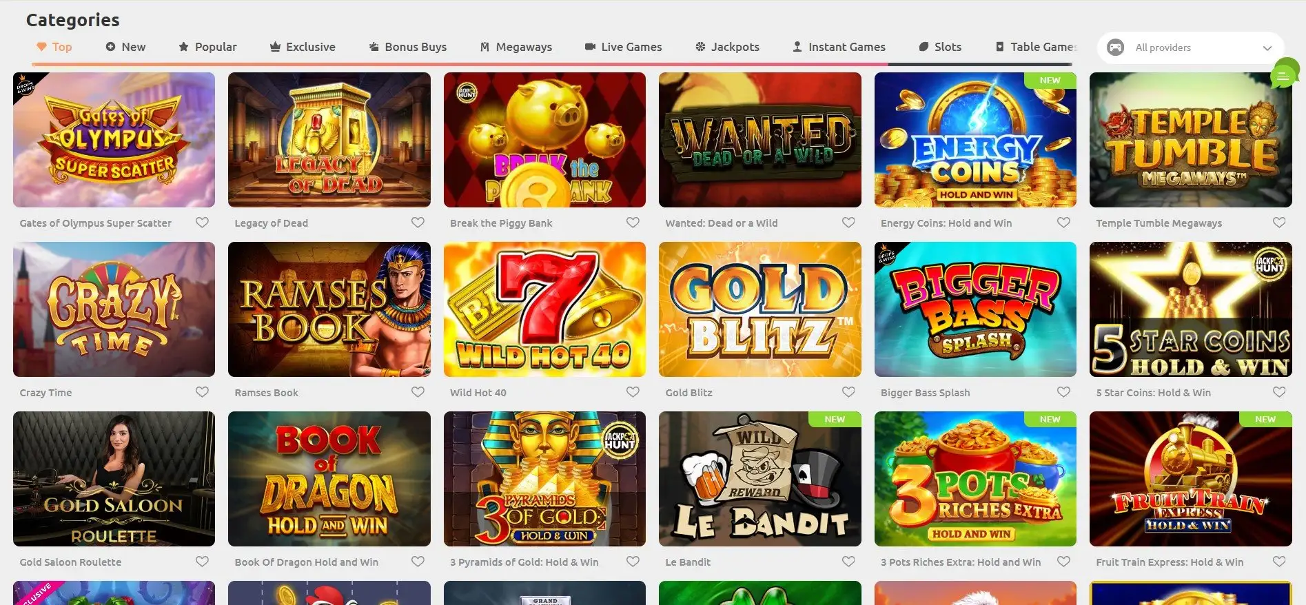 - Rozsáhlá knihovna her od předních poskytovatelů softwaru.