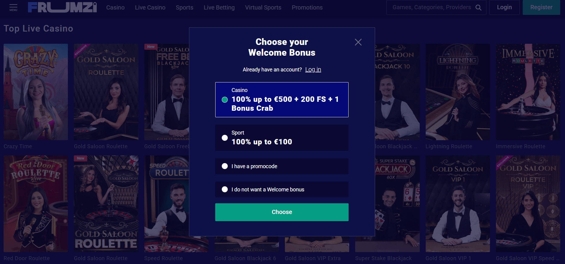 Je ve Frumzi Casino k dispozici no deposit bonus?