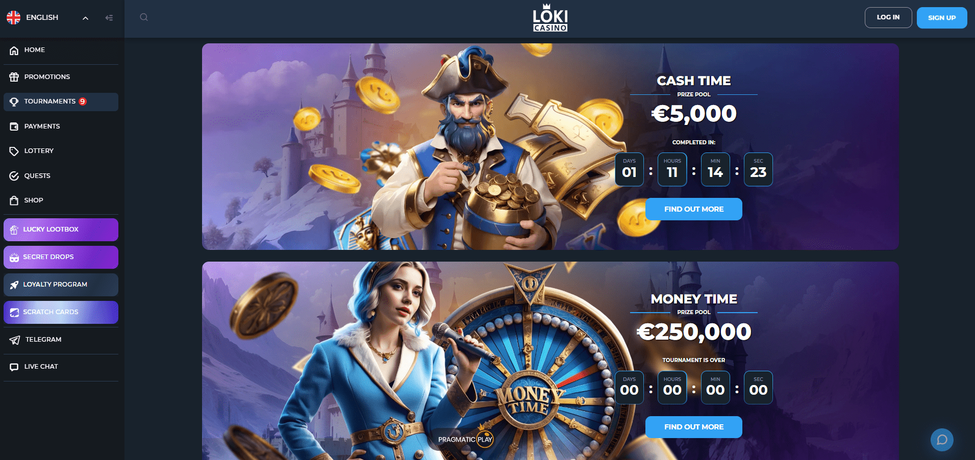Pro české uživatele je atraktivní zejména obrovská knihovna s více než 5 000 tituly. Najdete zde automaty, jackpoty, ruletu, karetní hry a stoly s živými krupiéry od renomovaných poskytovatelů jako Microgaming, Pragmatic Play, Yggdrasil nebo Evolution. Díky této nabídce si na své přijdou jak příležitostní hráči, tak i náročnější high rollery. K tomu se přidává možnost okamžitých výběrů, a to jak v klasických měnách, tak v kryptoměnách, což dělá z Loki flexibilní a moderní volbu.