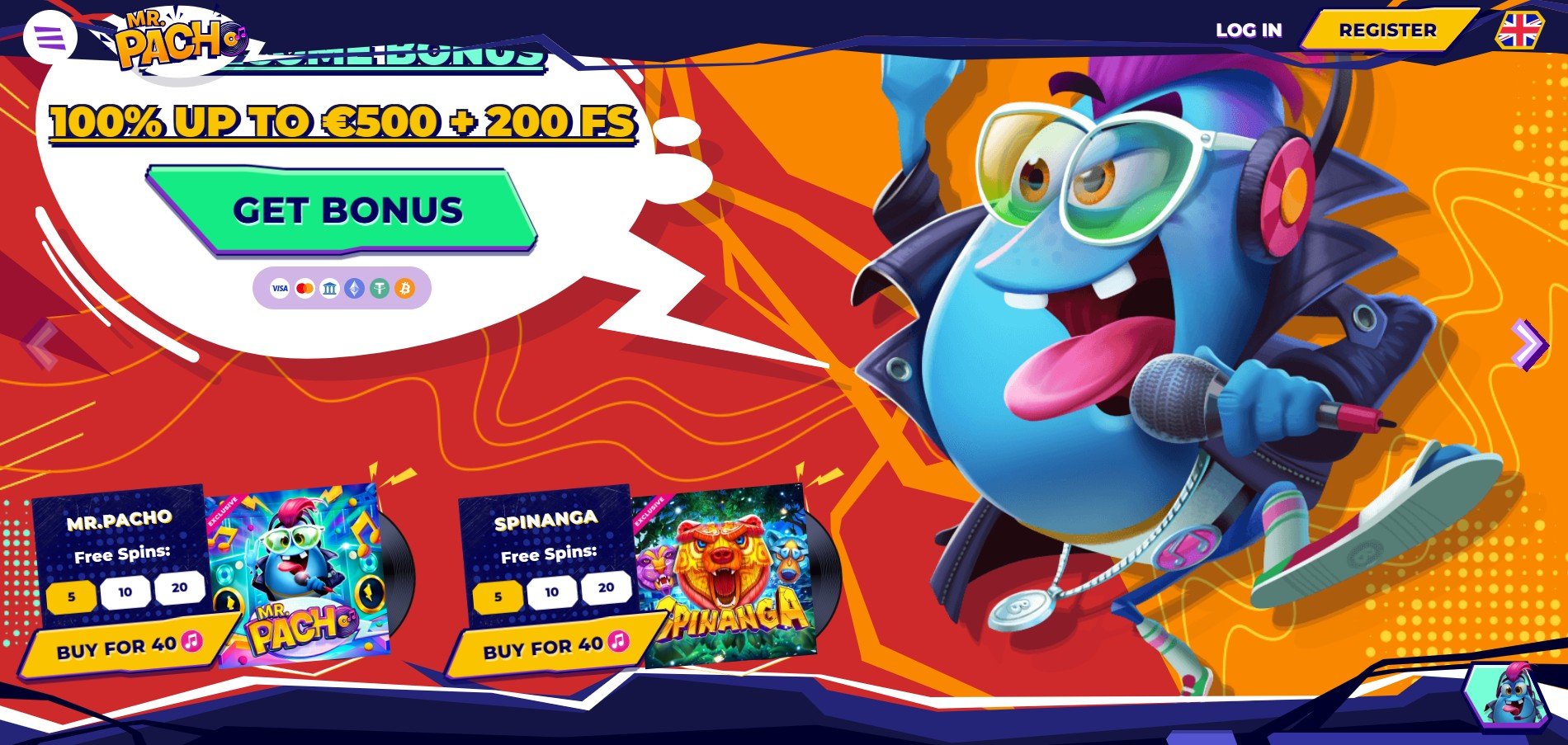Noví členové mohou získat dvoudílný balíček v hodnotě až 500 € a 200 volných zatočení. MrPacho kasino uvítací nabídka je rozdělena následovně: