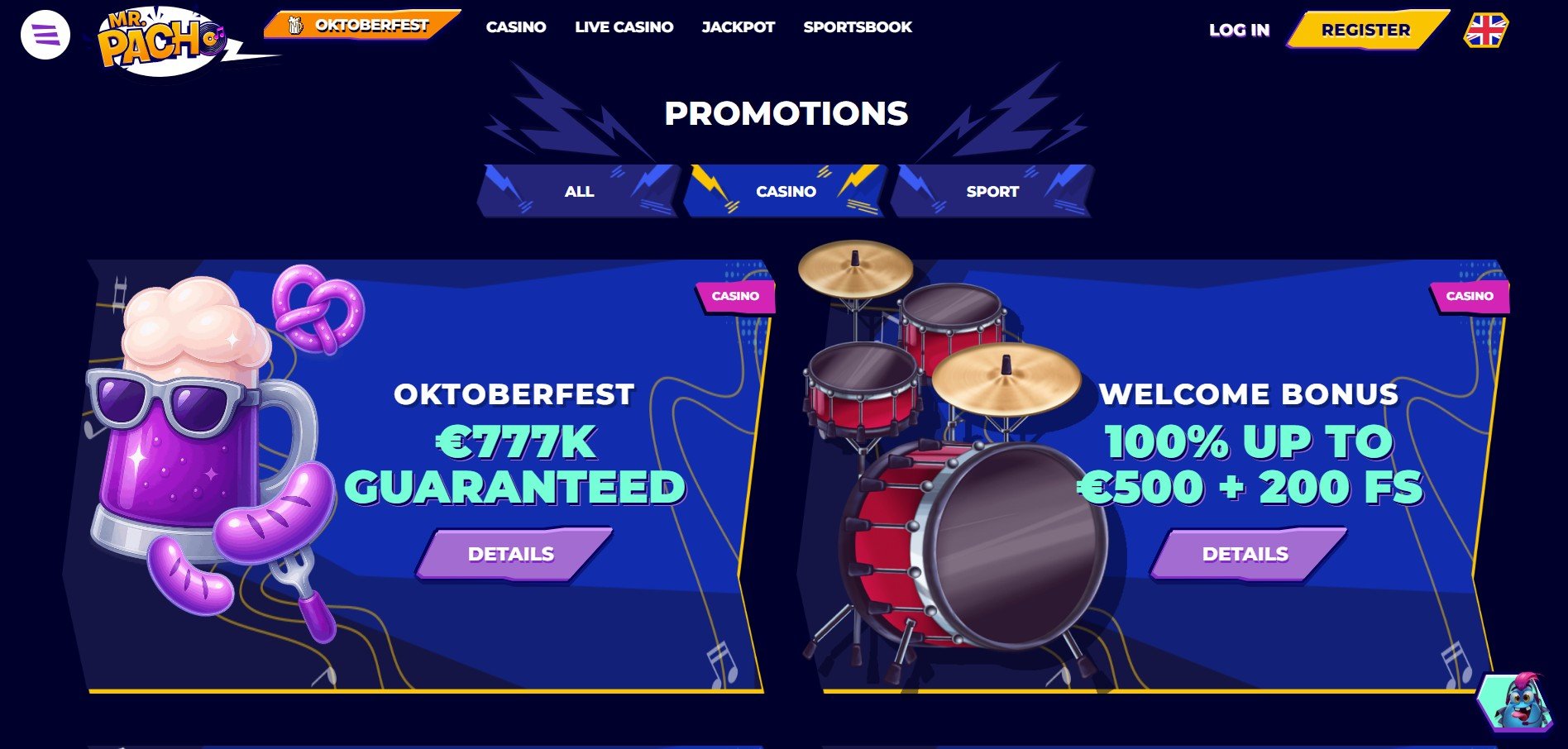 - Přejděte na oficiální webové stránky Mr Pacho Casino.