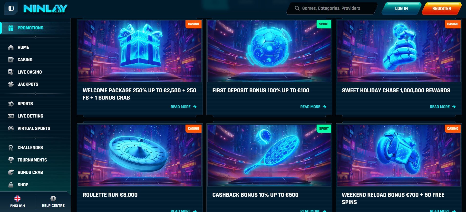 Ninlay kasino uvítací nabídka manifestuje velkorysost formou 250% multiplikátoru až 2.500 € komplementovaného 250 rotacemi zdarma plus Bonus Crab jednotkou. Tento bonus Ninlay kasino strukturuje vstupní výhodu pro nováčky.
