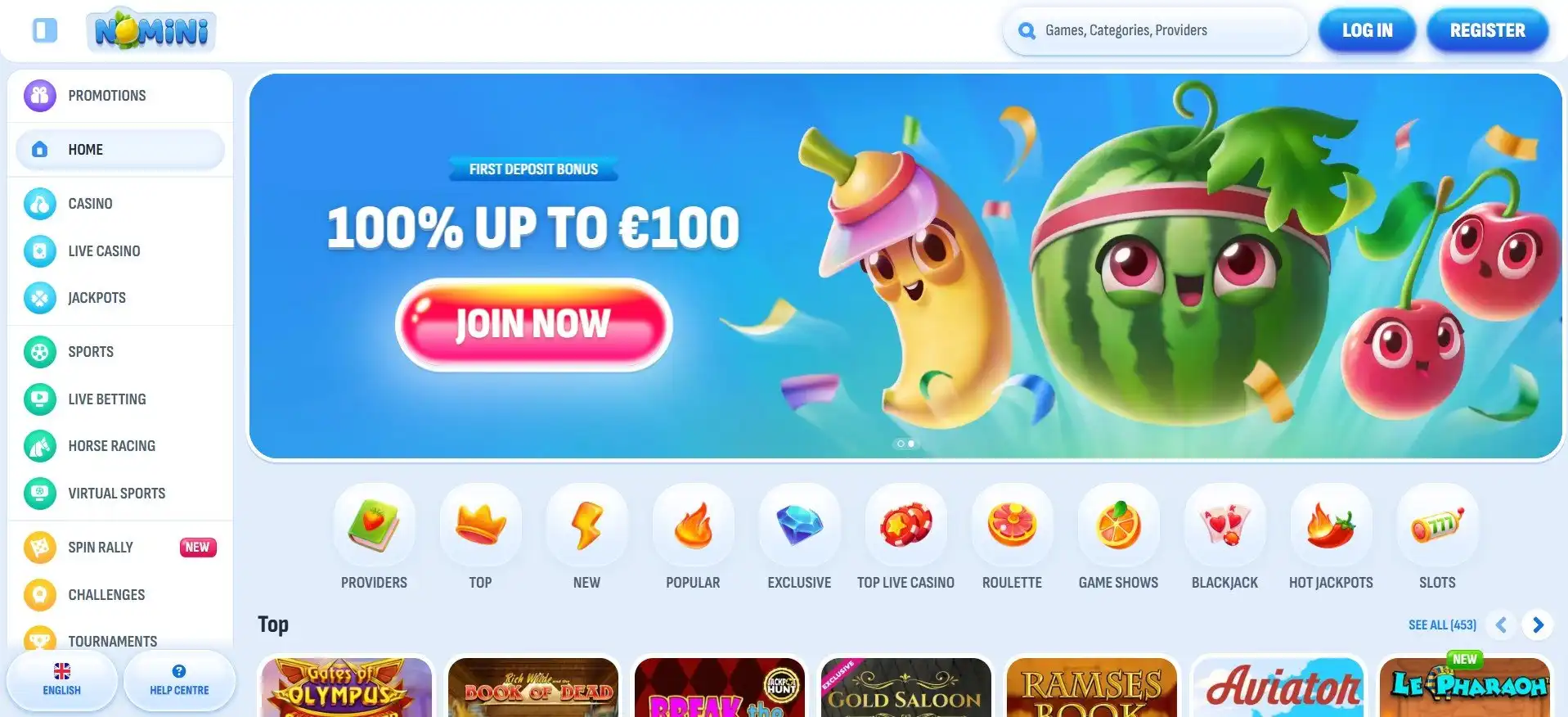 Nomini kasino si získalo popularitu mezi českými fanoušky online kasin díky hravému designu, široké nabídce bonusů a rozsáhlé knihovně her. Provozováno společností Rabidi N.V. a licencováno podle předpisů Curaçao, zajišťuje hráčům v Česku bezpečný a zábavný zážitek. Při registraci si uživatelé mohou vybrat z několika přizpůsobených uvítacích nabídek, ať už dávají přednost automatům, sportovnímu sázení nebo živým dealer hrám. Výrazným prvkem je gamifikované rozvržení platformy v kombinaci s lokální podporou, která zahrnuje platby v EUR a kompletní rozhraní v českém jazyce. Na stránkách CeskeOnlineCasina jsme pečlivě zrecenzovali Nomini, abychom čtenářům poskytli spolehlivé informace o platebních možnostech, výkonu na mobilu a podmínkách bonusů.