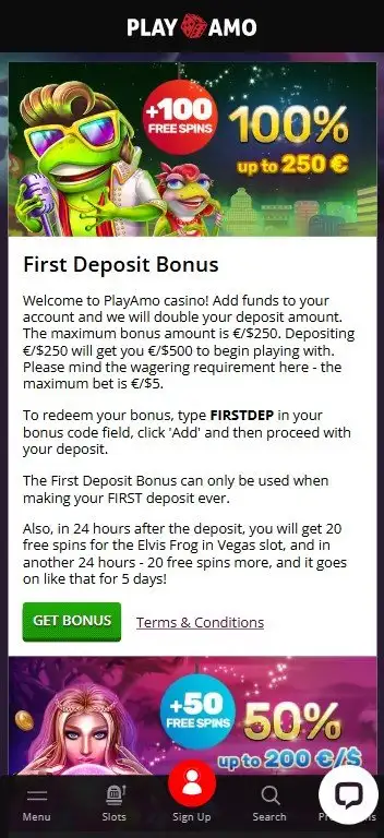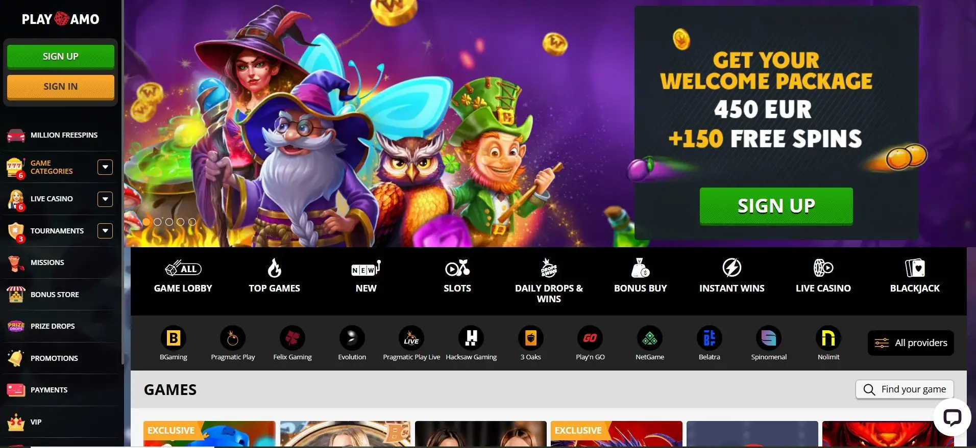 Noví členové mohou využít dvoufázovou uvítací nabídku v hodnotě až €450 a 150 volných zatočení. PlayAmo kasino uvítací nabídka je rozdělena následovně: