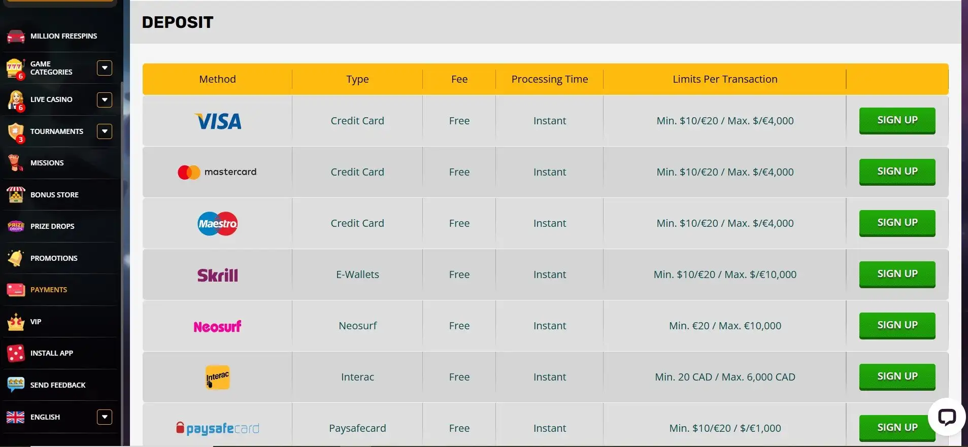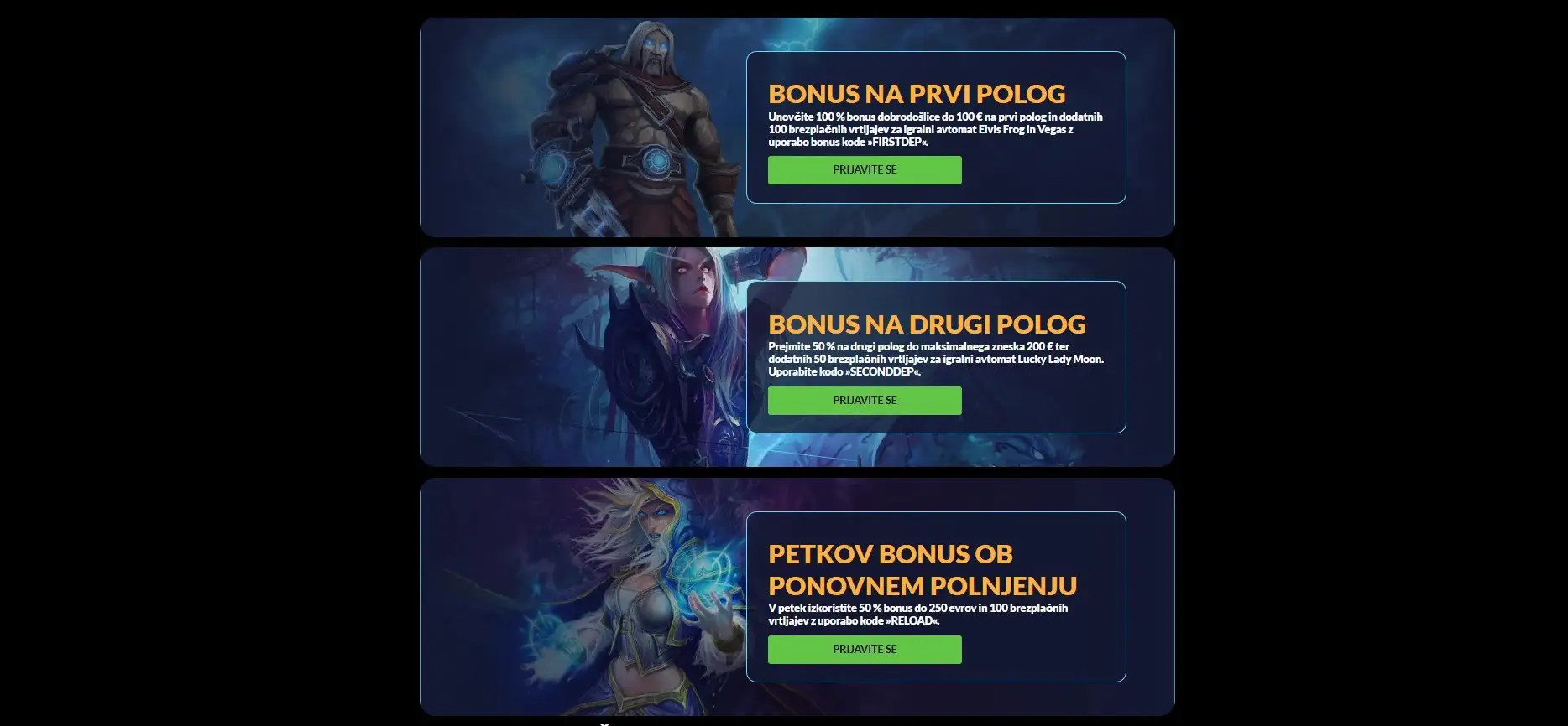- Bonus za první vklad – 100% až do €250 + 100 volných zatočení na hru Elvis Frog in Vegas. Minimální vklad €20, požadavek na protočení 50×. Zatočení jsou přidělována po 20 denně po dobu 5 dní.