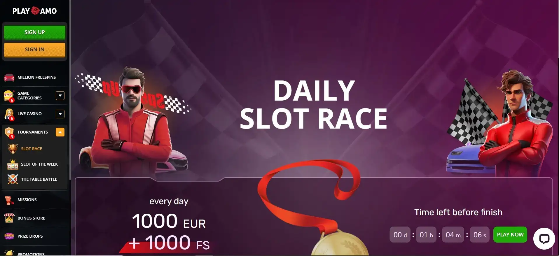 Soutěživí hráči najdou v PlayAmo kasino online kasino pravidelné akce a výzvy: