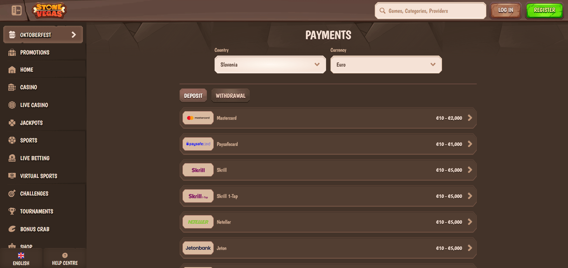 Languages available at StoneVegas Casino site are English, French, Finnish, Greek, Norwegian, Polish, Spanish, Czech, Swedish, Portuguese, Slovenian, German, Hungarian, Italian.