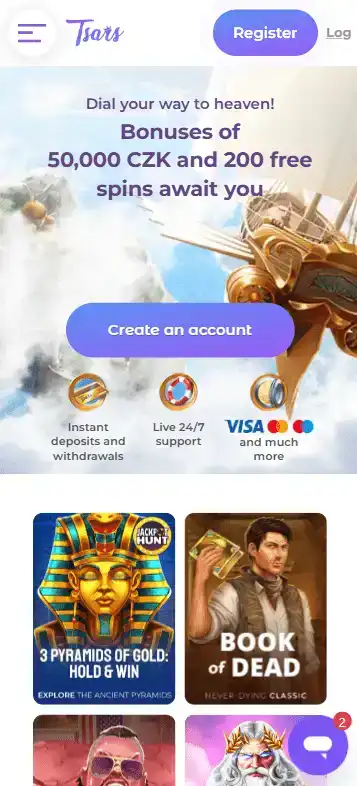 Tsars Casino je moderní online herní web, který spojuje rychlou registraci s elegantní grafikou a rozsáhlým katalogem her. Pro hráče v Česku je obzvlášť atraktivní volbou díky licenci Curaçao (8048/JAZ2015-046), bezproblémovým možnostem plateb v EUR a plynulému fungování na mobilních zařízeních. Tsars kasino recenze zdůrazňuje i lákavou uvítací nabídku v hodnotě až 2 000 € a 200 volných zatočení, doplněnou o pravidelné akce jako týdenní reload bonusy a denní odměny. Ať už procházíte stránky na počítači nebo telefonu, rozložení je intuitivní a každá hlavní sekce je snadno dostupná.