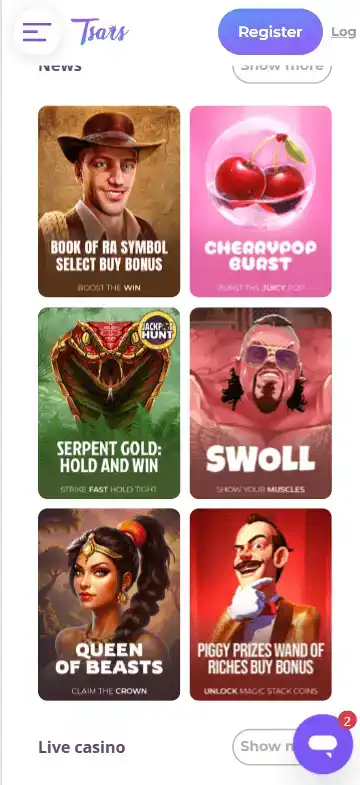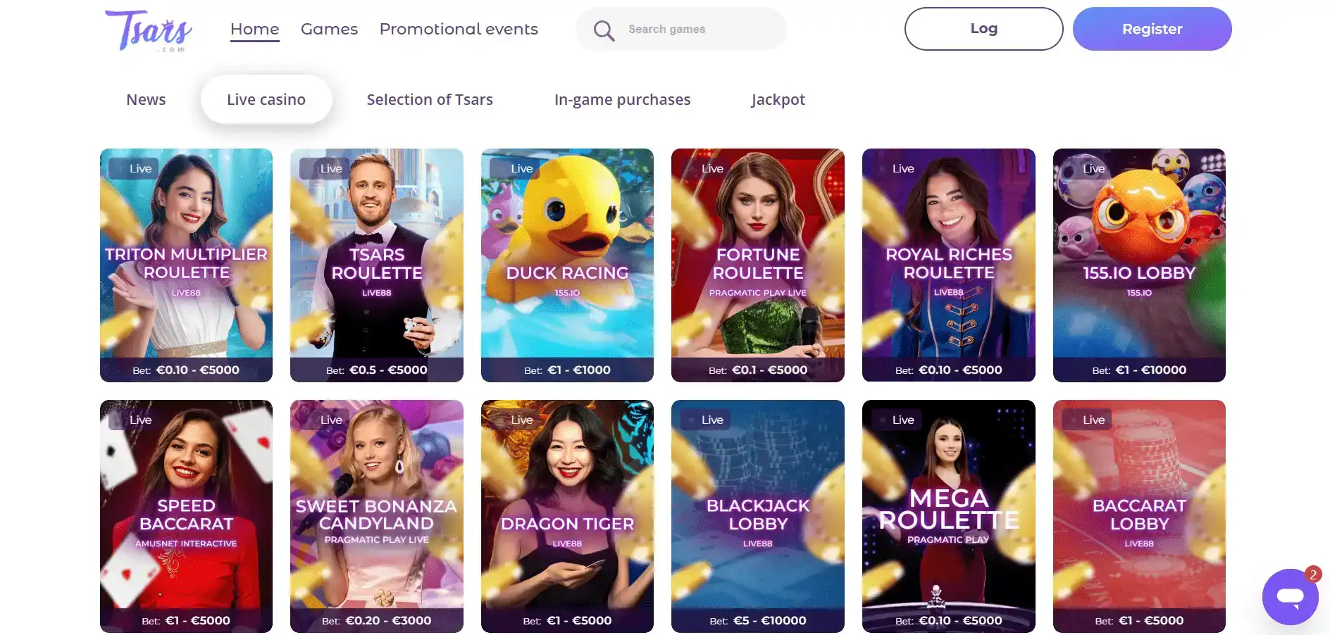 Tsars kasino analýza ukazuje, že hráči v Česku si mohou užít vše od klasických automatů až po pohlcující zážitky v live casinu. Díky stovkám titulů, které jsou pravidelně doplňovány, si Tsars udržuje moderní a spolehlivou knihovnu, jež funguje dobře na všech typech zařízení.