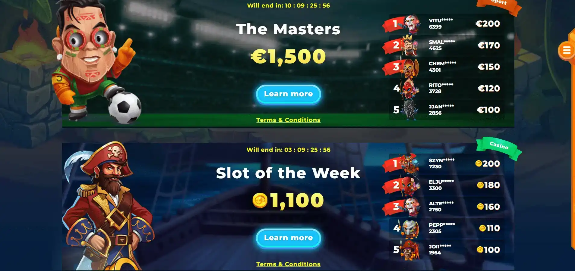 - Týdenní turnaje na automatech vyzývají hráče, aby se v konkrétních hrách posunuli v žebříčcích, přičemž nejlepší hráči si rozdělují velké výherní fondy.