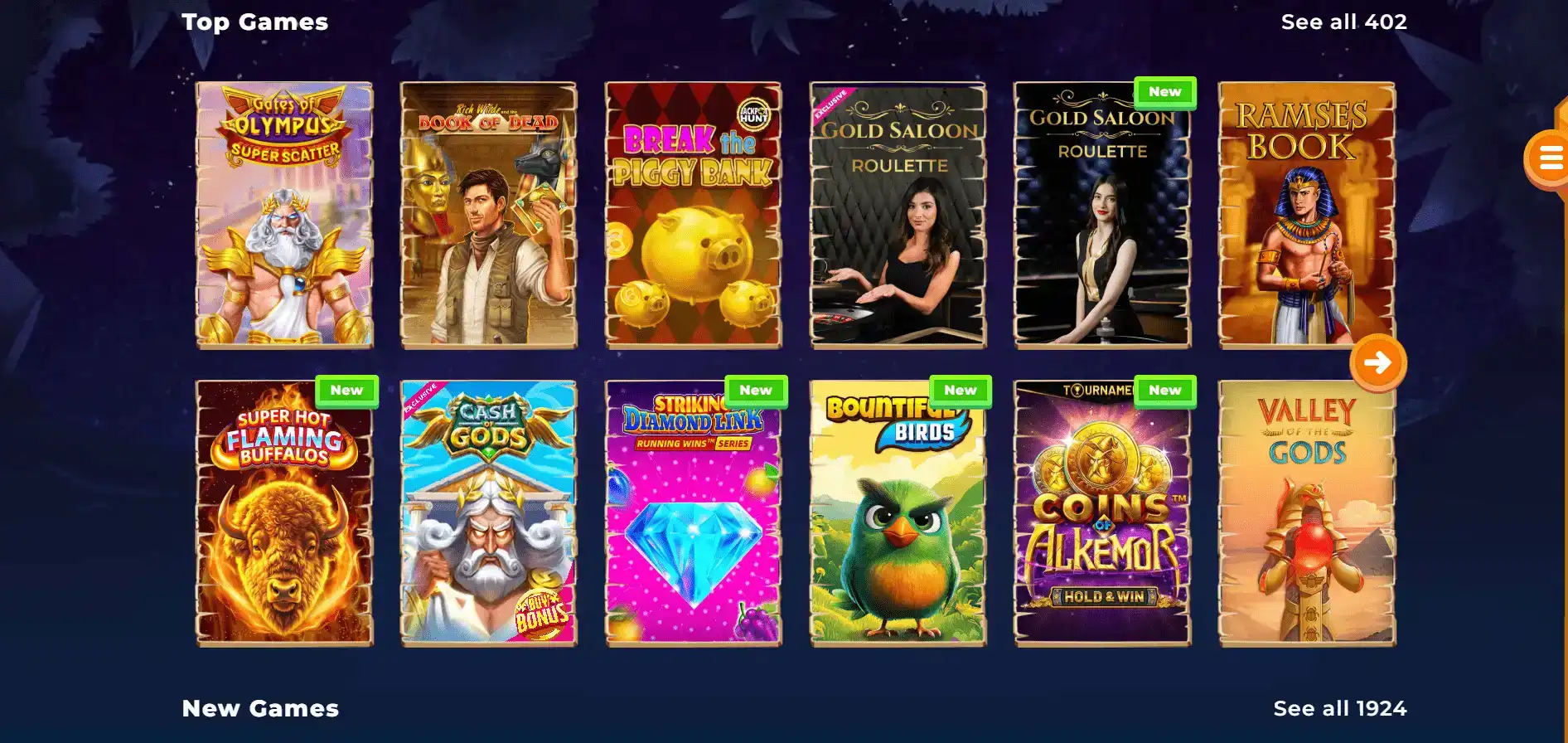 - Okamžité hry – Crash tituly, stírací losy a virtuální sporty.
