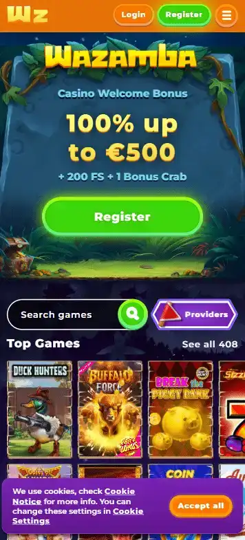 Noví členové mohou začít se 100% bonusem až do výše 500 € a 200 volnými spiny. Wazamba kasino uvítací nabídka je dostupná po registraci a vkladu alespoň 20 €.