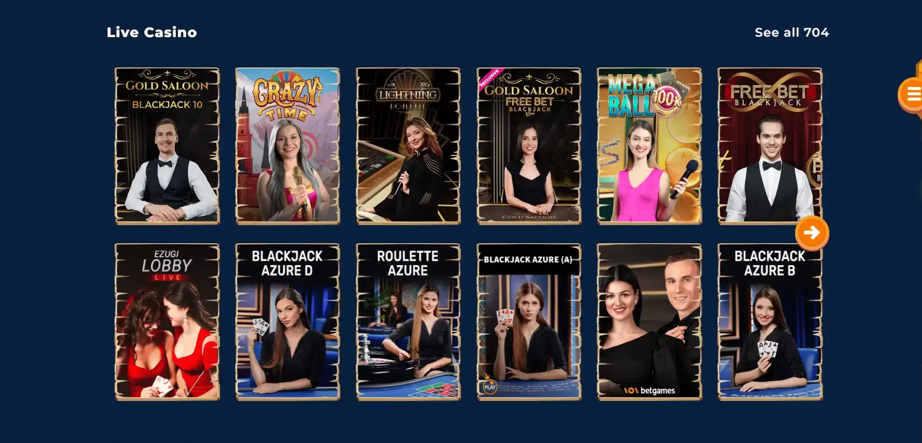- Live Casino – Hry v reálném čase s profesionálními krupiéry od předních studií.