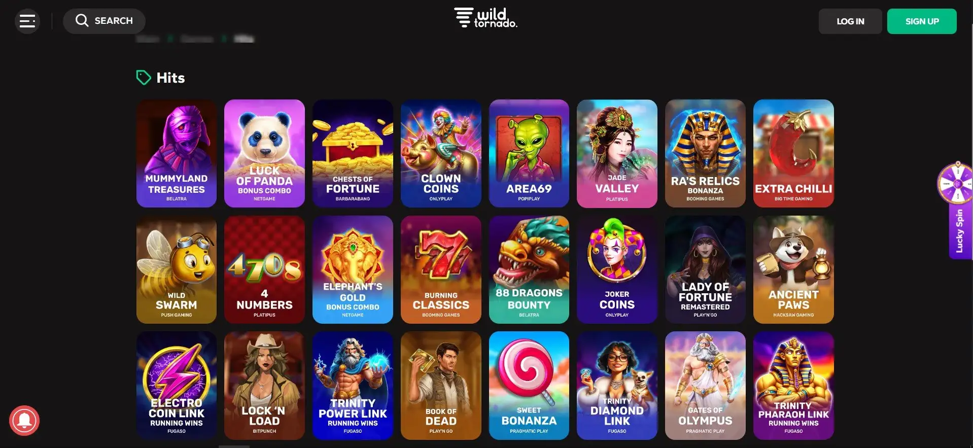 Díky této široké nabídce mají čeští hráči přístup k celé škále titulů – od klasických slotů a moderních videoher až po profesionální stoly s živými dealery. Právě Wild Tornado automaty tvoří hlavní část knihovny, jsou pravidelně aktualizované, bezpečné a prokazatelně férové, což udržuje hraní stále atraktivní.