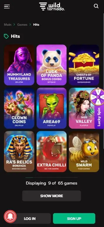 Naše Wild Tornado kasino analýza ukazuje, že doba načítání je velmi rychlá a rozhraní se ovládá snadno. Vložit kryptoměnu, roztočit sloty nebo kontaktovat zákaznickou podporu lze udělat jedním klepnutím, a to bez nutnosti stahování jakéhokoli softwaru.