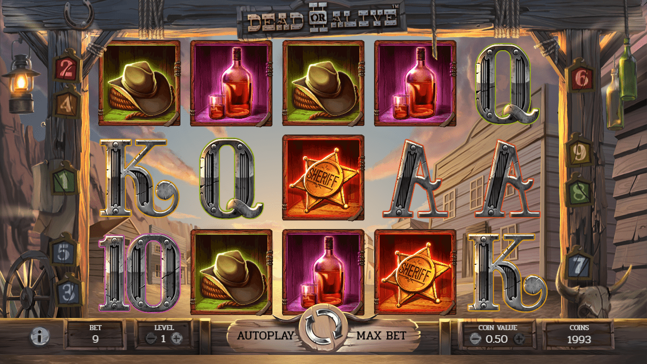 Dead or Alive 2 má rozvržení s 5 válci a 3 řadami a nabízí 9 pevných výherních linií.