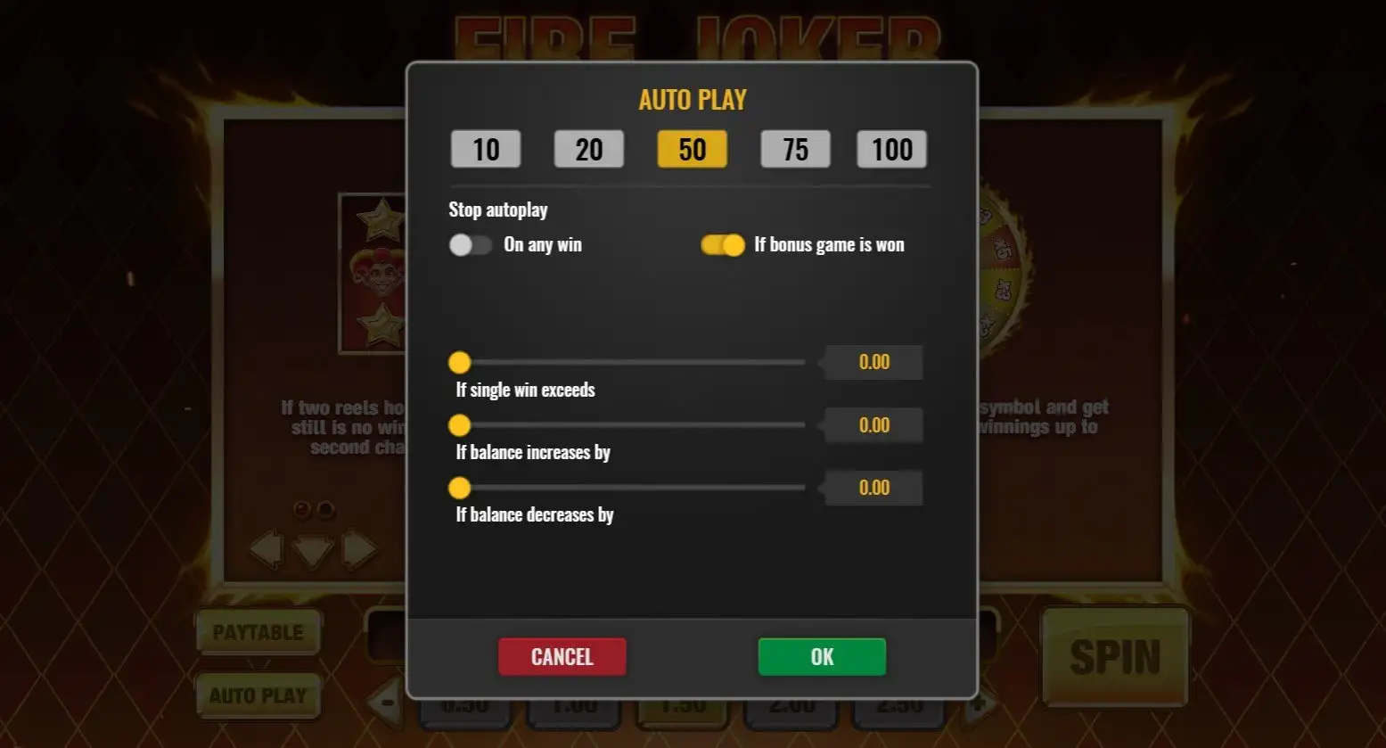 Fire Joker hrací automat také neobsahuje žádné rozšiřující se symboly – každý symbol zůstává pevně daný jak velikostí, tak i svou pozicí. To podtrhuje retro půvab hry a zajišťuje, že hratelnost zůstává jednoduchá a snadno sledovatelná, což ji činí obzvlášť atraktivní pro začátečníky.