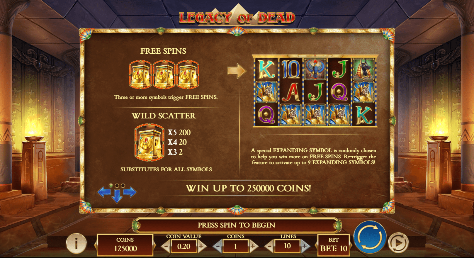 - Vyzkoušejte zdarma demo verzi Legacy of Dead, než začnete hrát o reálné peníze.